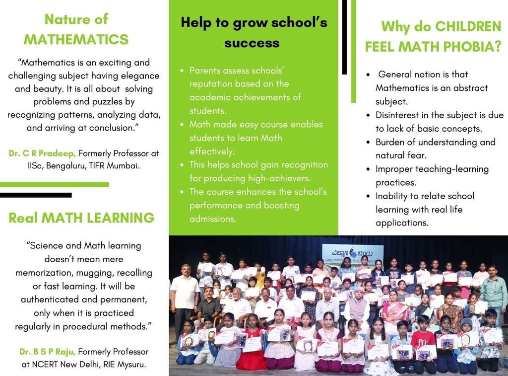 MATH LAB is a unit of Vijnana Bindu, working for making teaching-learning process interesting and enjoyable. It is undertaking Science and Mathematics projects from NCSTC, Department of Science and Technology, Government of India, NEW DELHI.